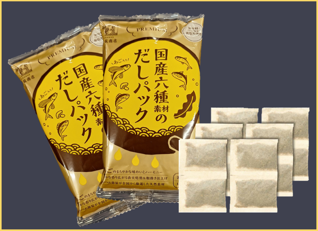 第1回は「国産六種素材のだしパック(あご入り)」です